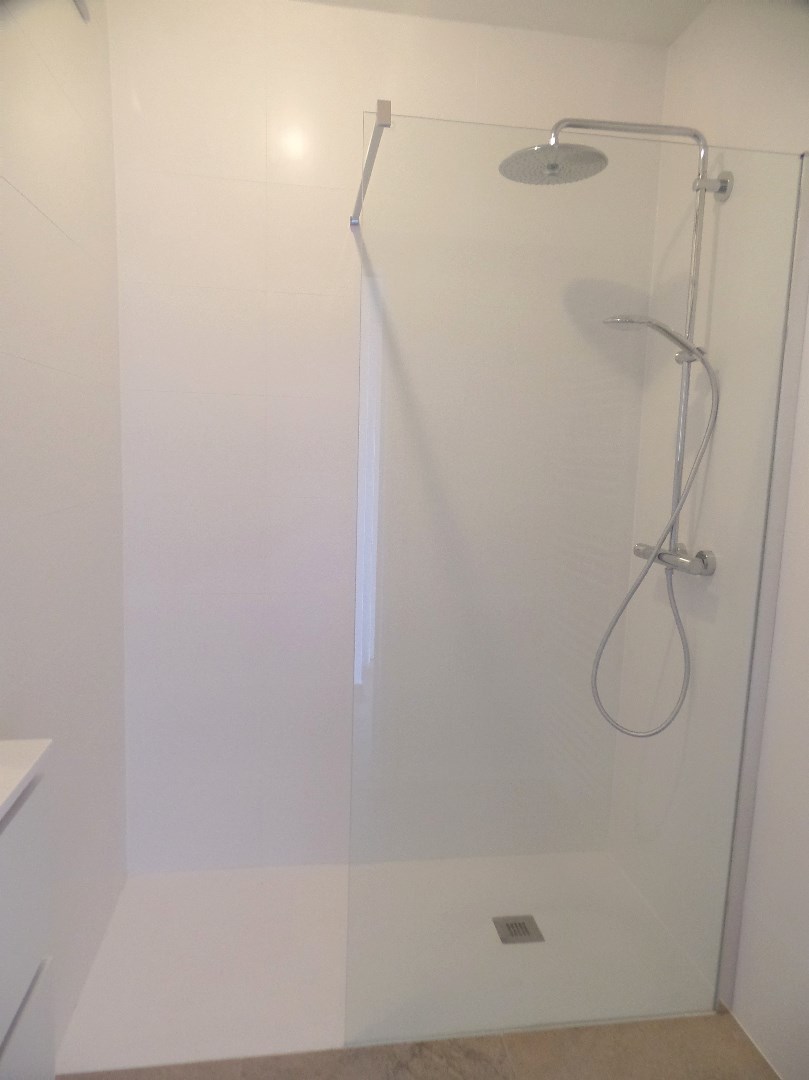 Entrée, cuisine, living, 3 chambres, 2 terrasses, toilette séparée et salle de bain avec douche à l'italienne.