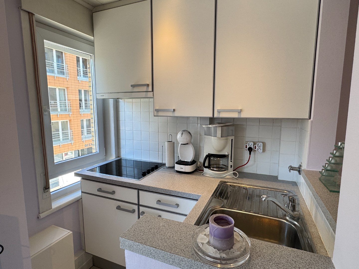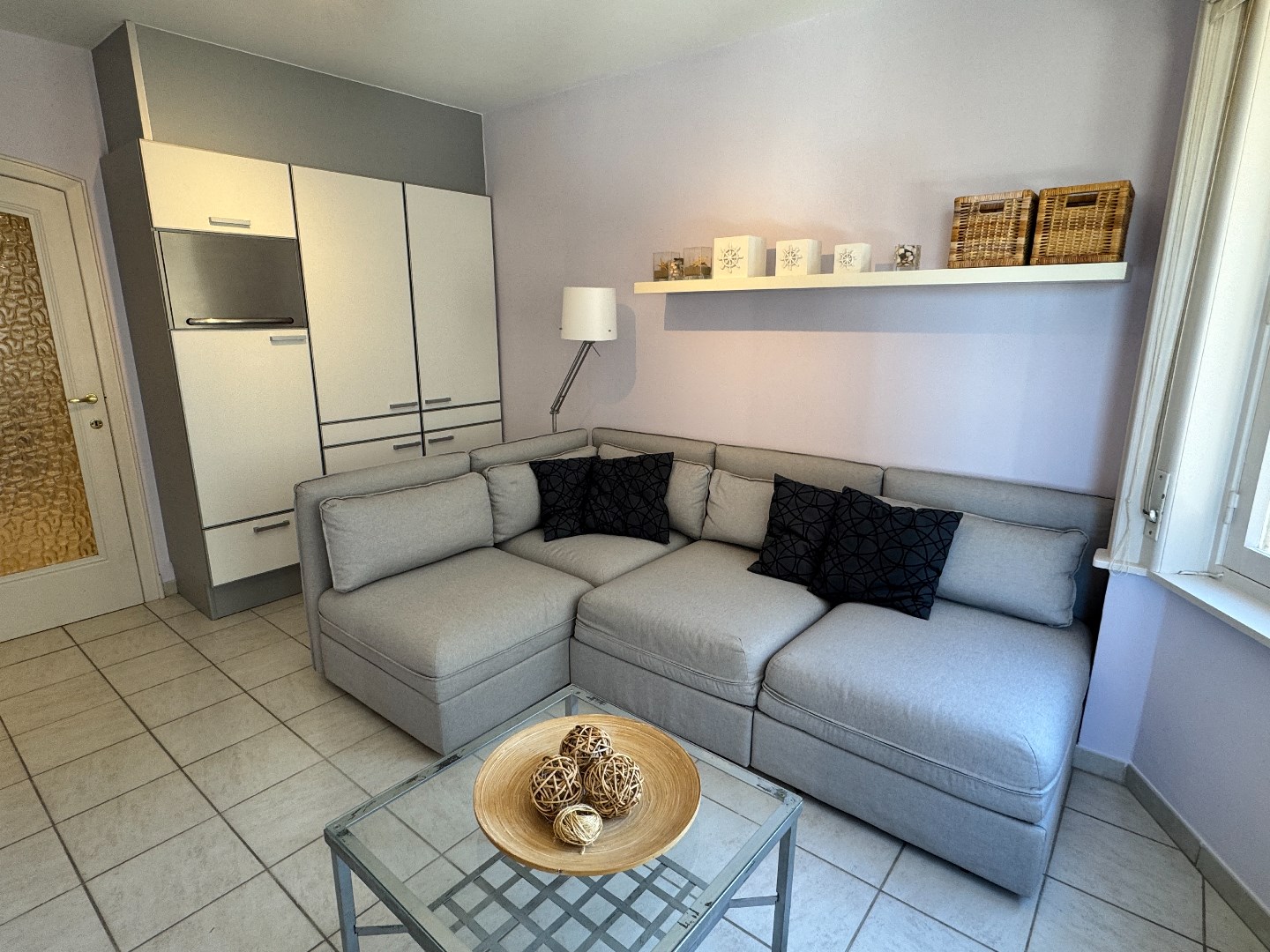 Hall d'entrée, living avec vue latérale sur la mer, coin à manger et cuisine semi-ouverte, 2 chambres à coucher, salle de bains avec douche et lavabo, toilette séparée et une cave privative.