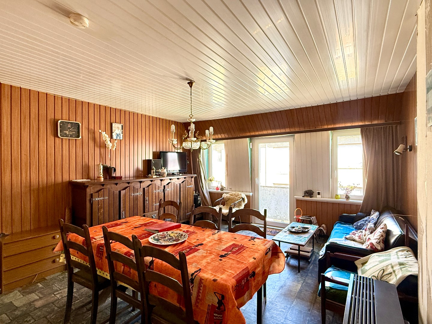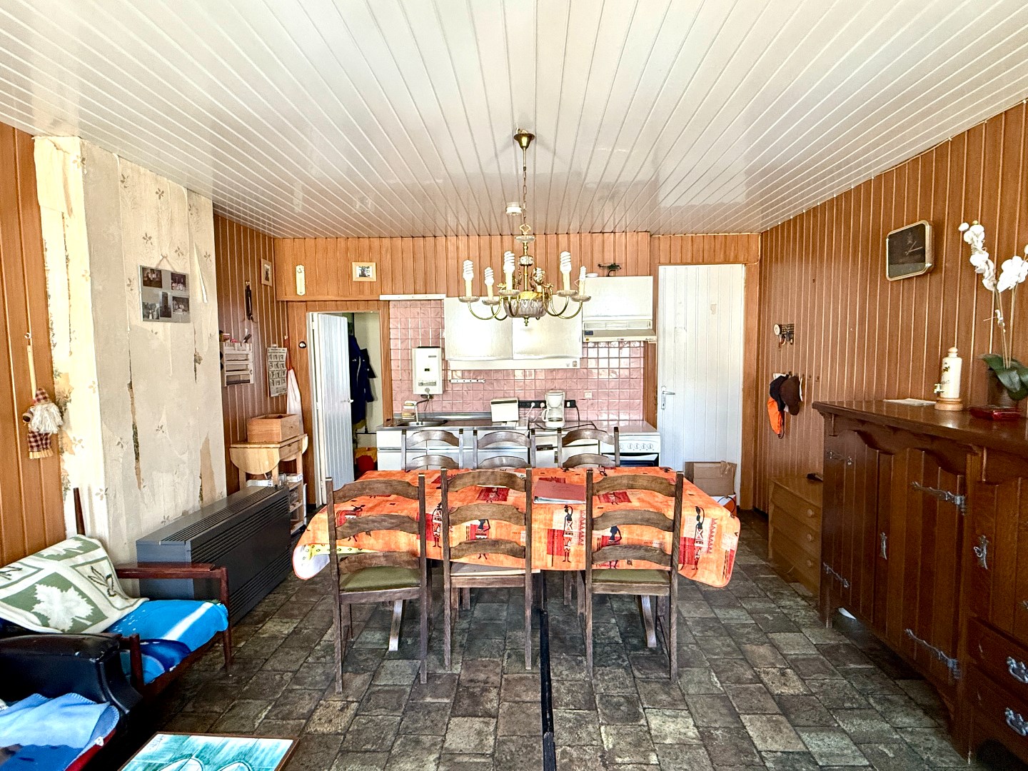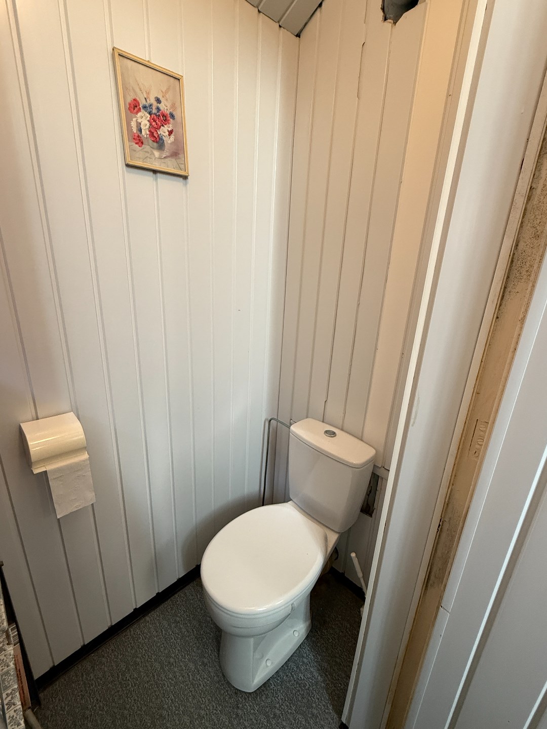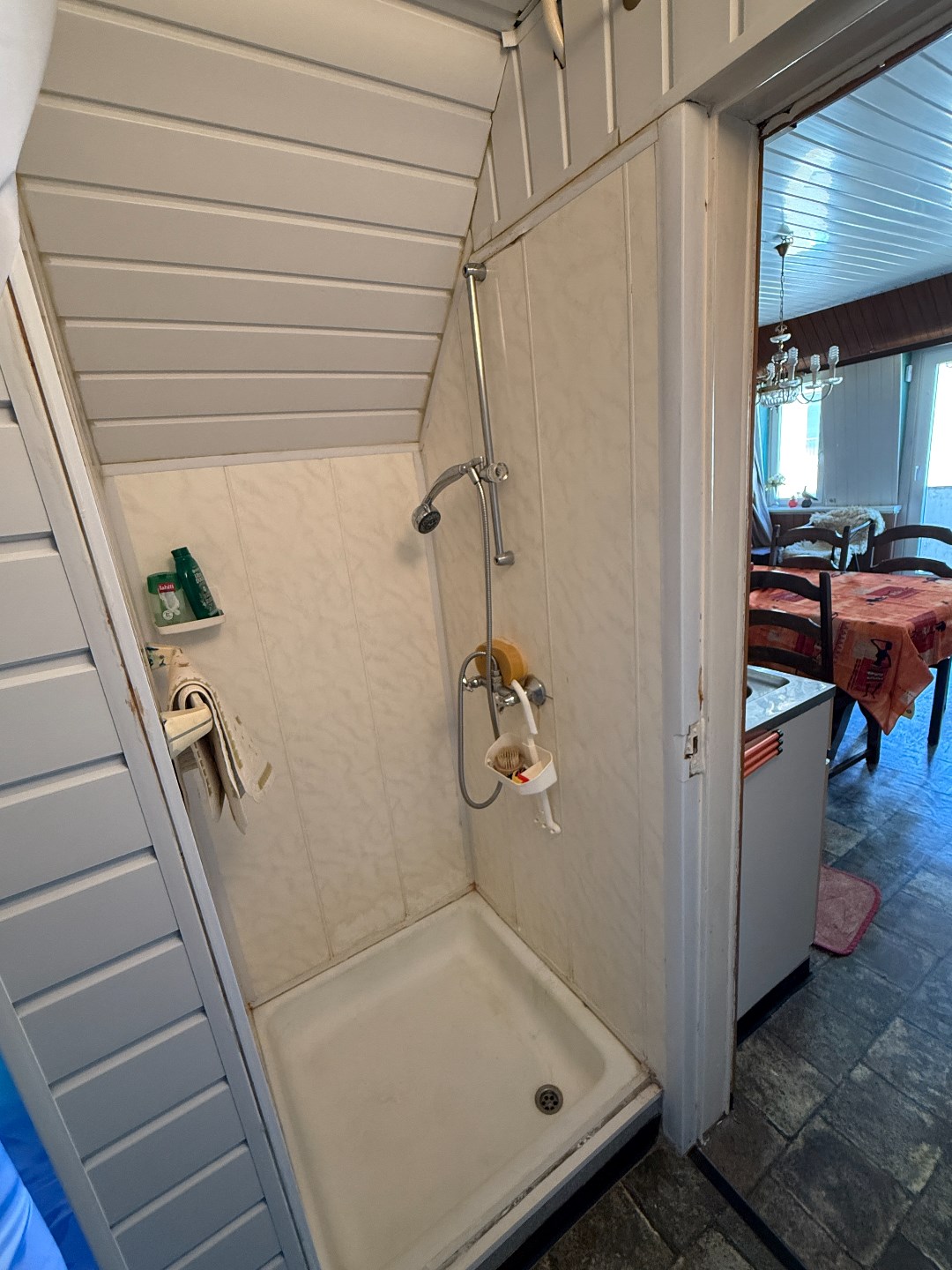 Séjour avec cuisine ouverte, salle de douche, chambre et toilette séparée sur le pallier.