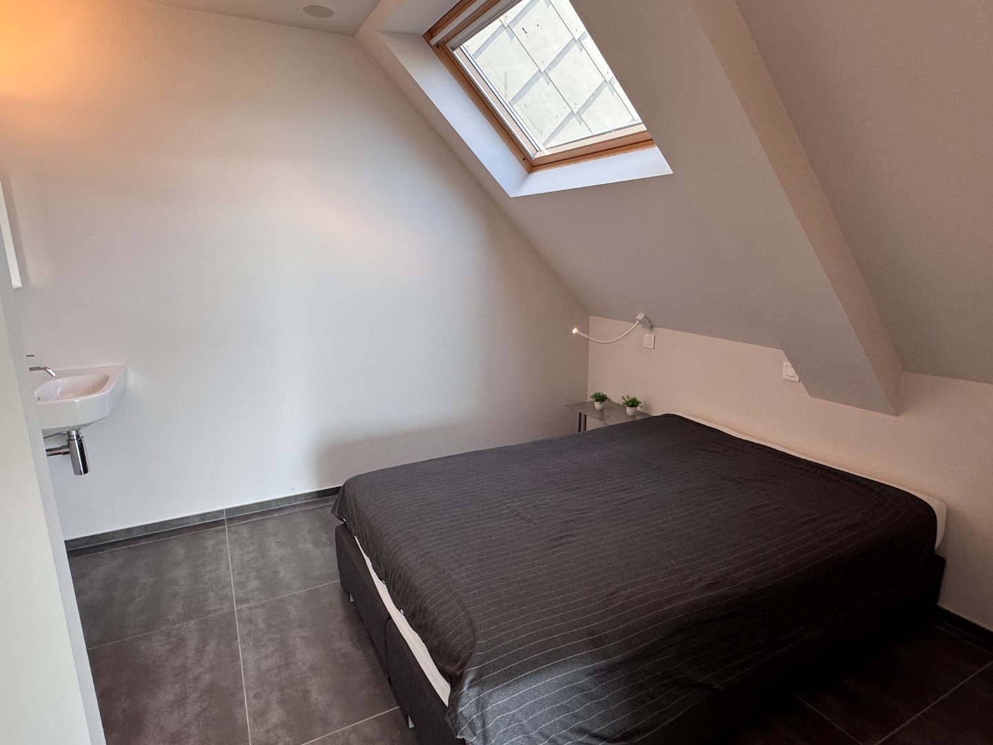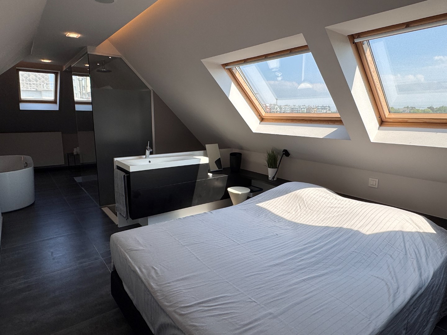 4ème étage: Chambre avec salle de bains attenante avec grande baignoire, douche à l'italienne et lavabo.