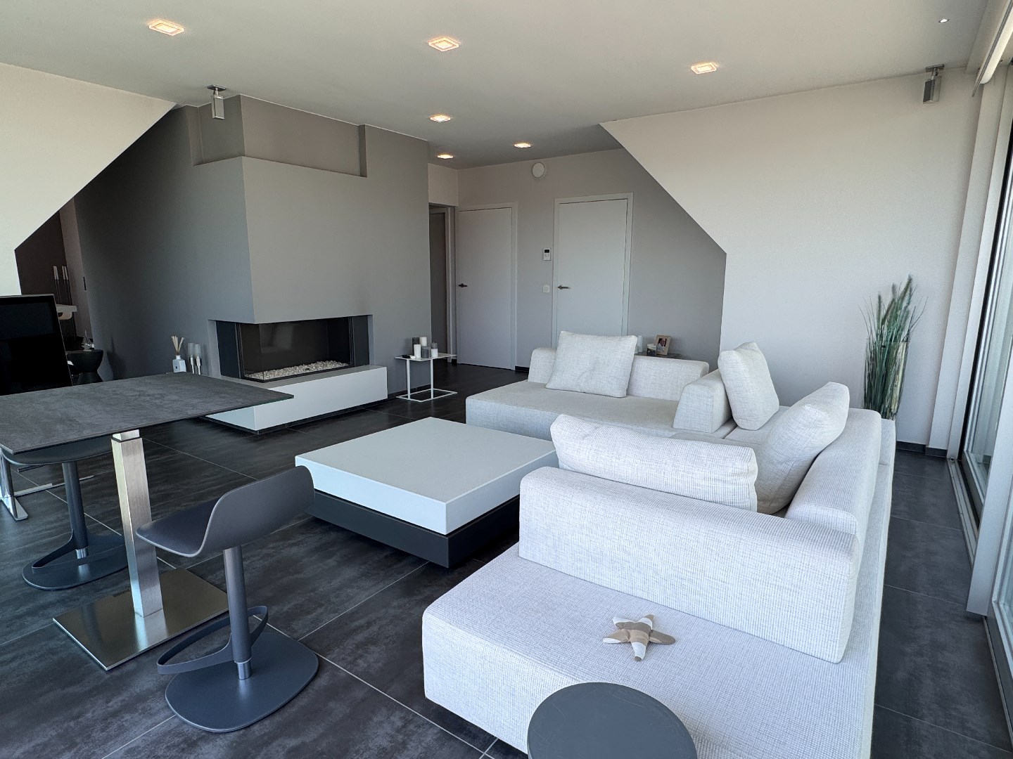 Chauffage par le sol partiel - Système de ventilation D - Armoires sur mesure sans poignées et système audio dans tout l'appartement - Éclairage Delta light et Nimbus (dimmbale, direct et indirect) - Stores ... électriques - Télévision Loewe avec système audio - Câbles pour panneaux solaires prévus - Ascenseur arrivant dans l'appartement
