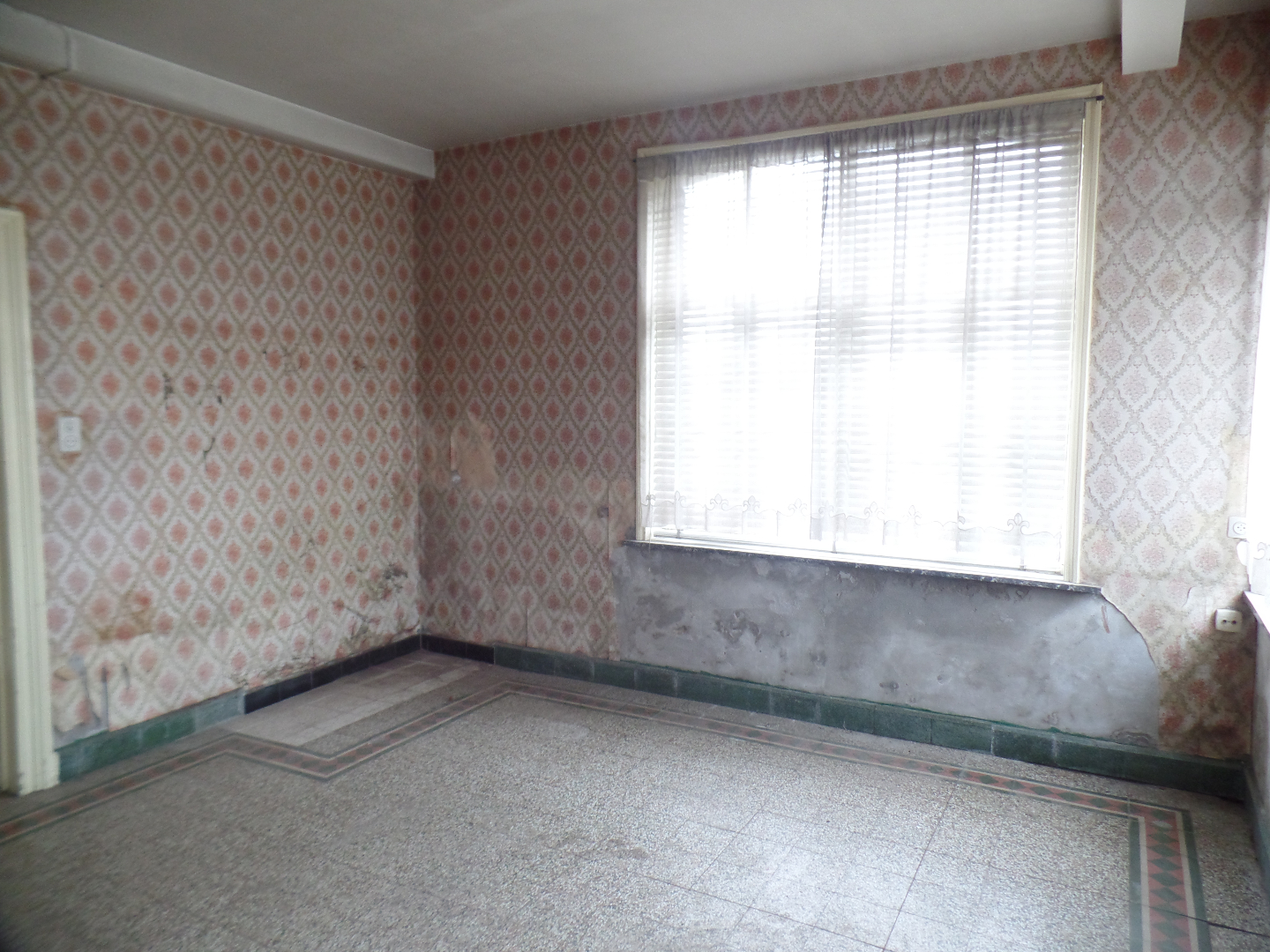 Rez-de-chaussée: hall d'entrée, living, cuisine, chambre, garage, veranda, débarras, toilette séparée, un grand jardin et un débarras spacieux au fond du jardin.