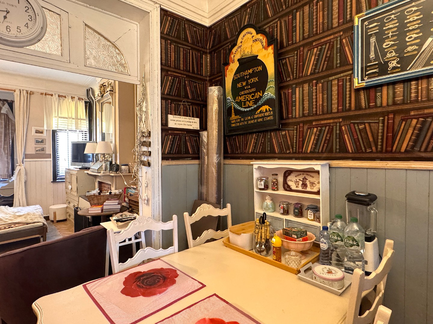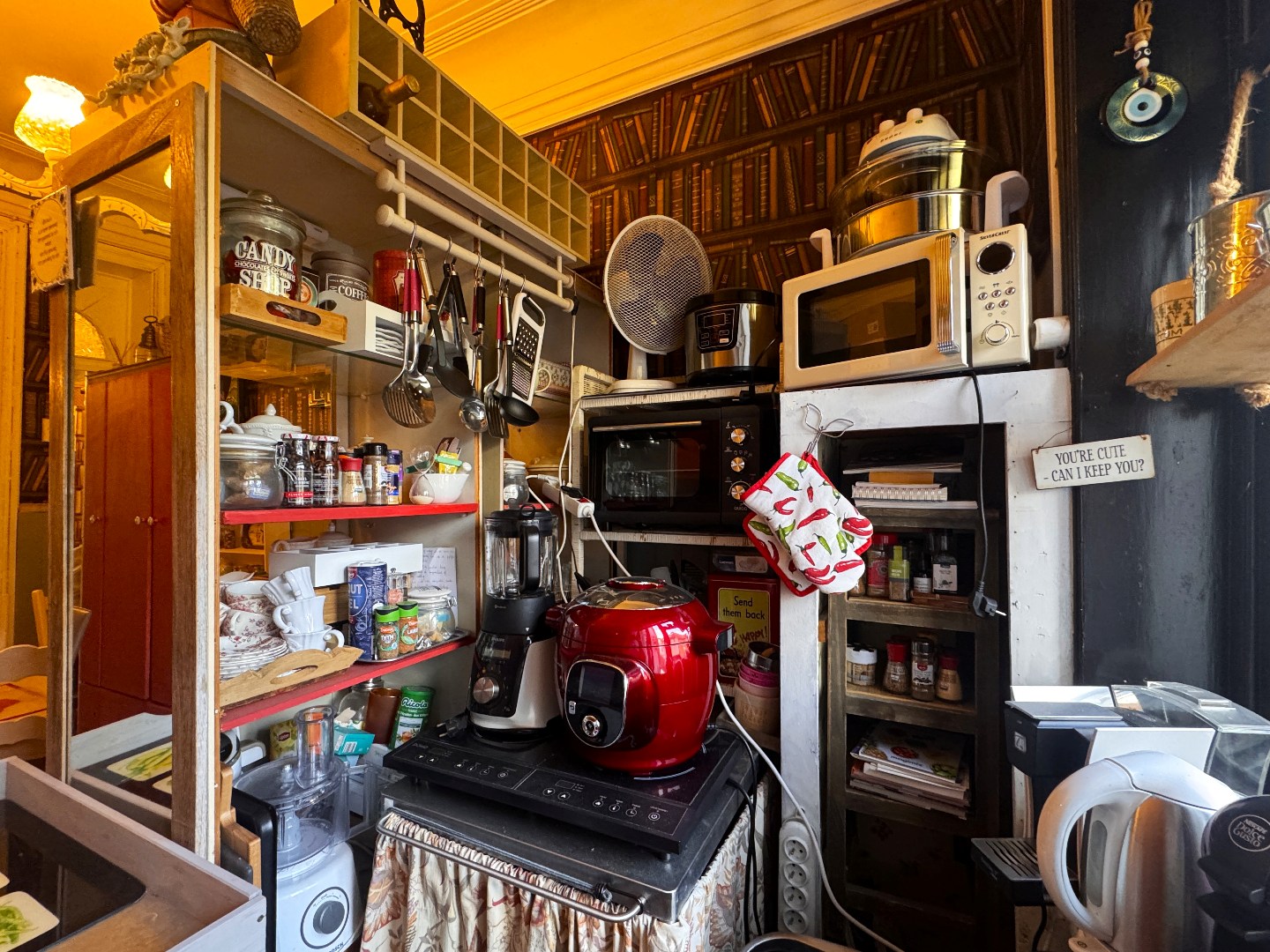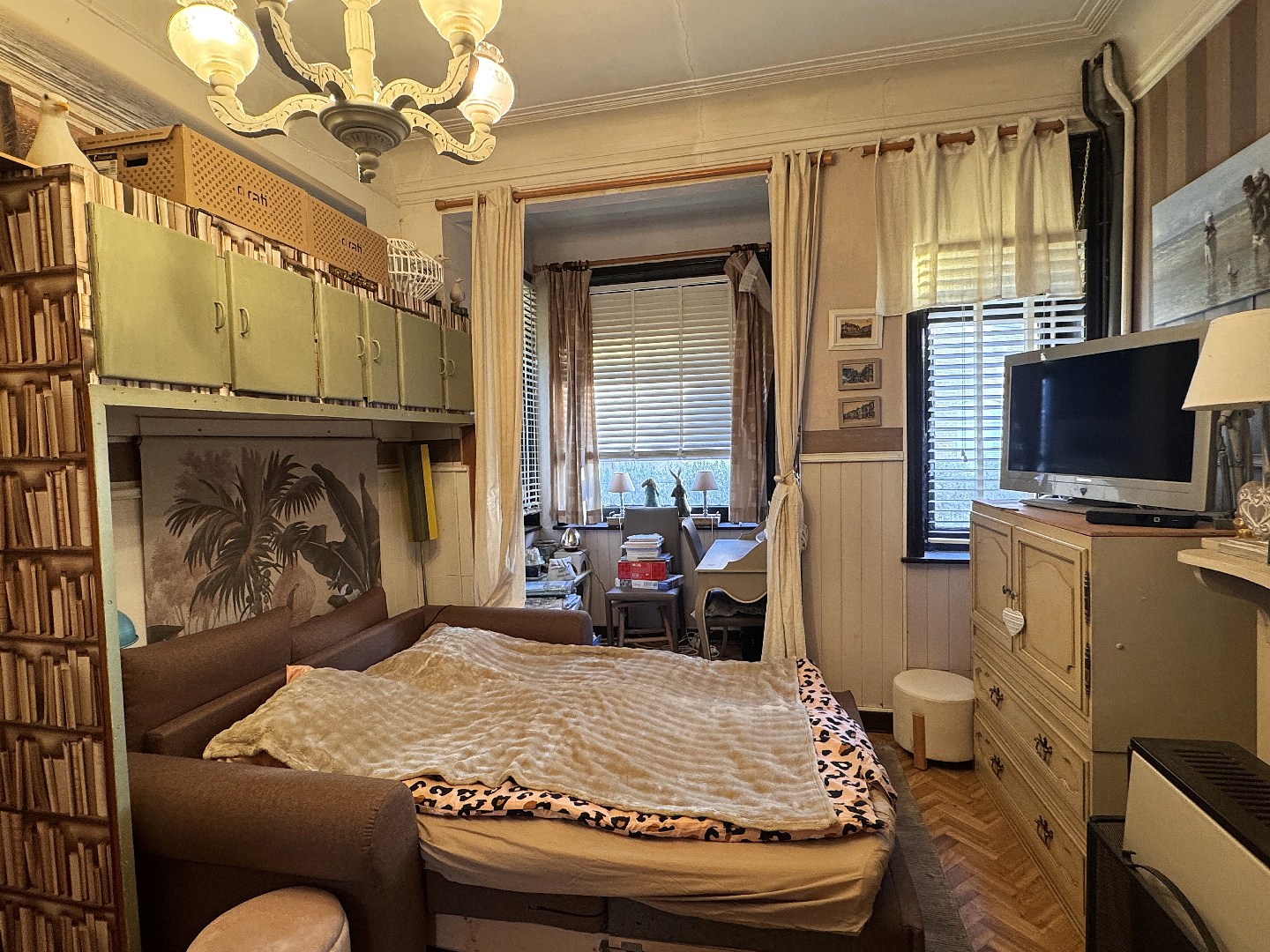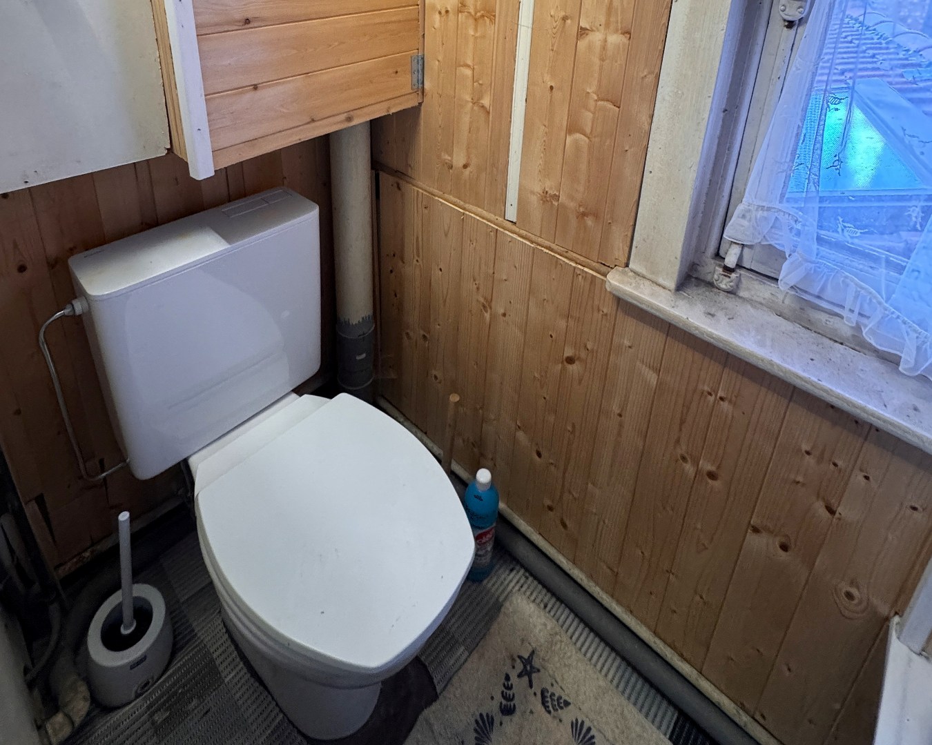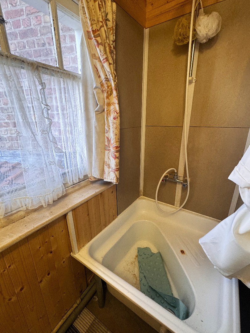L’espace de vie combine de manière pratique le séjour et le coin nuit, avec une cuisine équipée d’appareils électroménagers. Salle de bains avec baignoire-douche, WC et lavabo.
