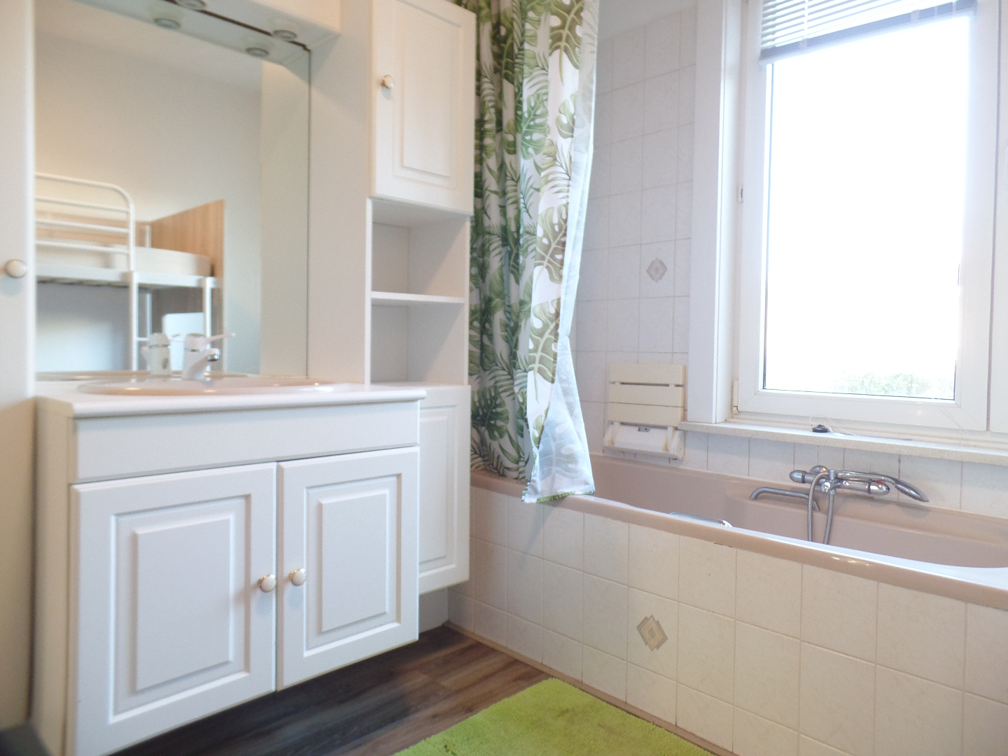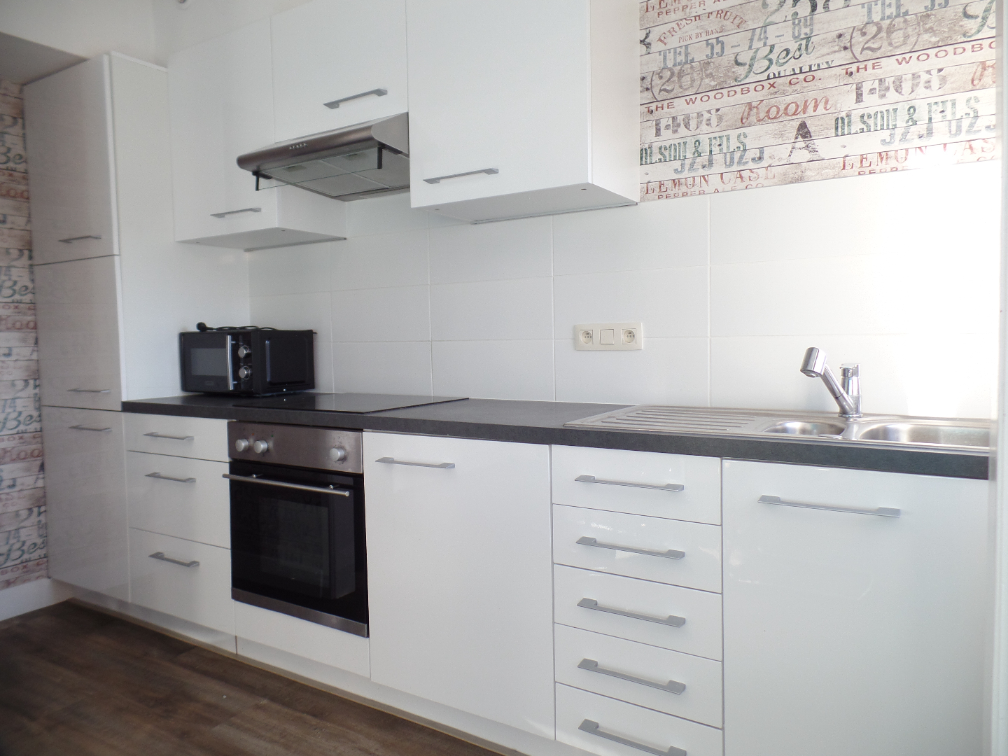 Woonkamer met open ingerichte keuken, 1 slaapkamer, badkamer met ligbad en wastafel, apart toilet, berging met aansluiting voor wasmachine, TUIN.