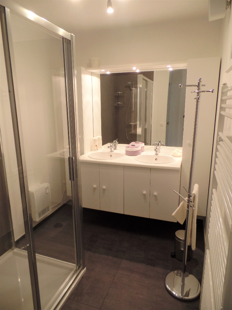 Inkomhal, ruime woonkamer met balkon met zicht op de Houtsaegherduinen, volledig ingerichte open keuken, 3 slaapkamers, allen grenzend aan een ruim zongericht terras, badkamer met douche en dubbele wastafel, apart toilet, een kelder en een privatieve wasruimte.