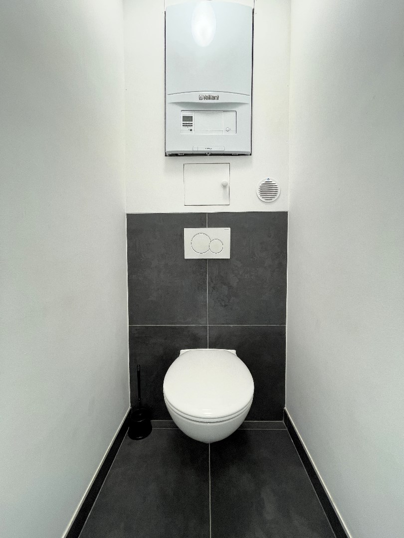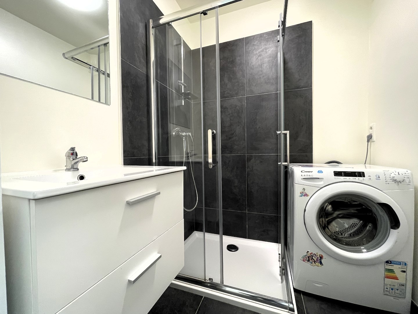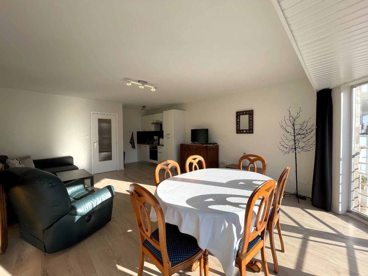Inkom, lichtrijke woonkamer met open ingerichte keuken, 2 slaapkamers, badkamer met douche en apart toilet.