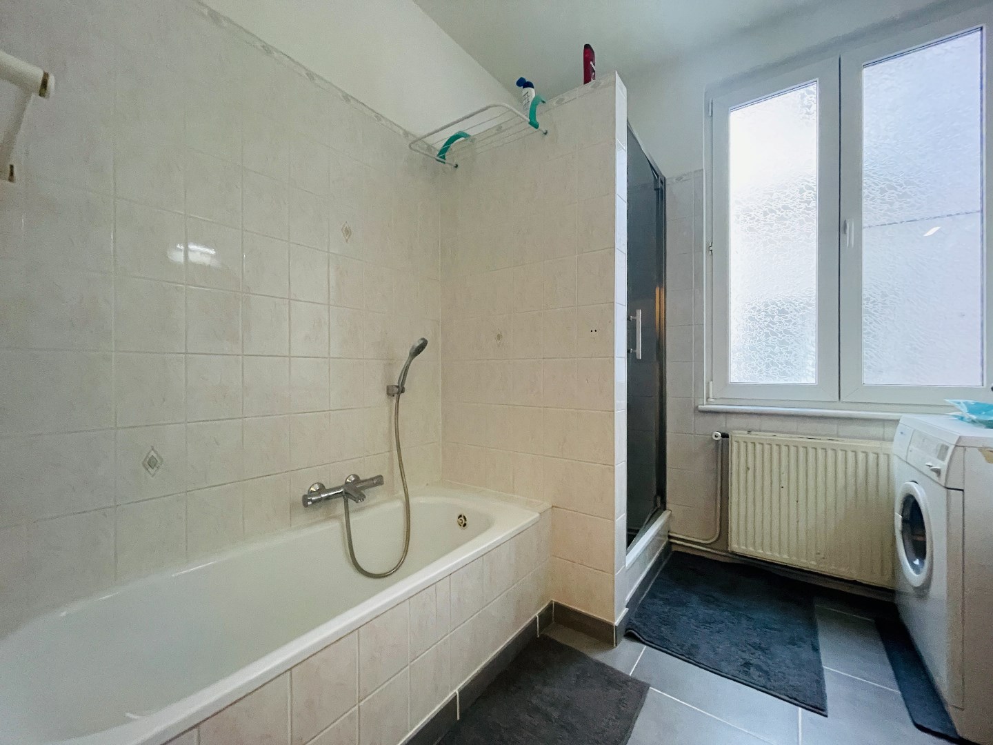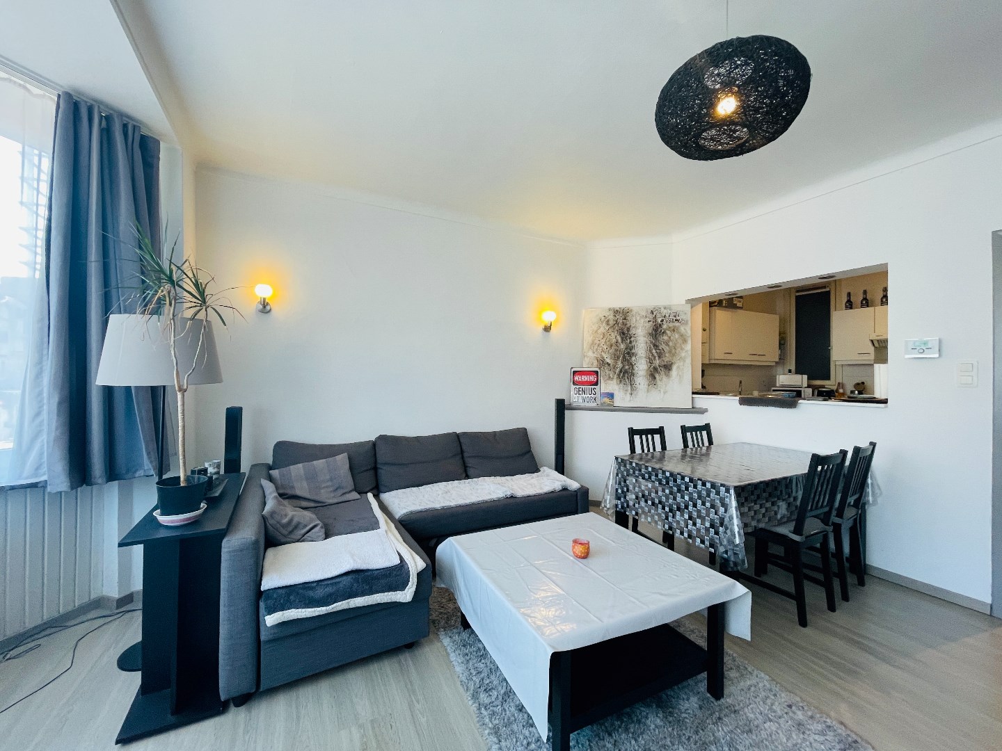 Inkomhal, lichtrijke woonkamer, halfopen ingerichte keuken, 3 slaapkamers, badkamer met ligbad, douche, wastafel en aansluiting voor een wasmachine, apart toilet en een nachthal.