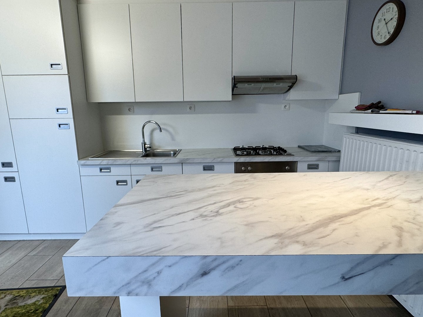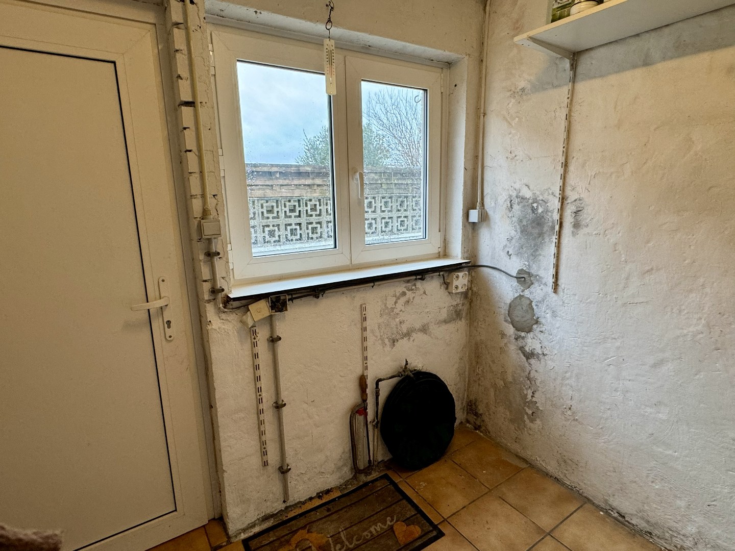Onbemeubelde rijwoning bestaande uit inkom, ruime woonkamer met open keuken, badkamer, 2 slaapkamers, berging en tuin.