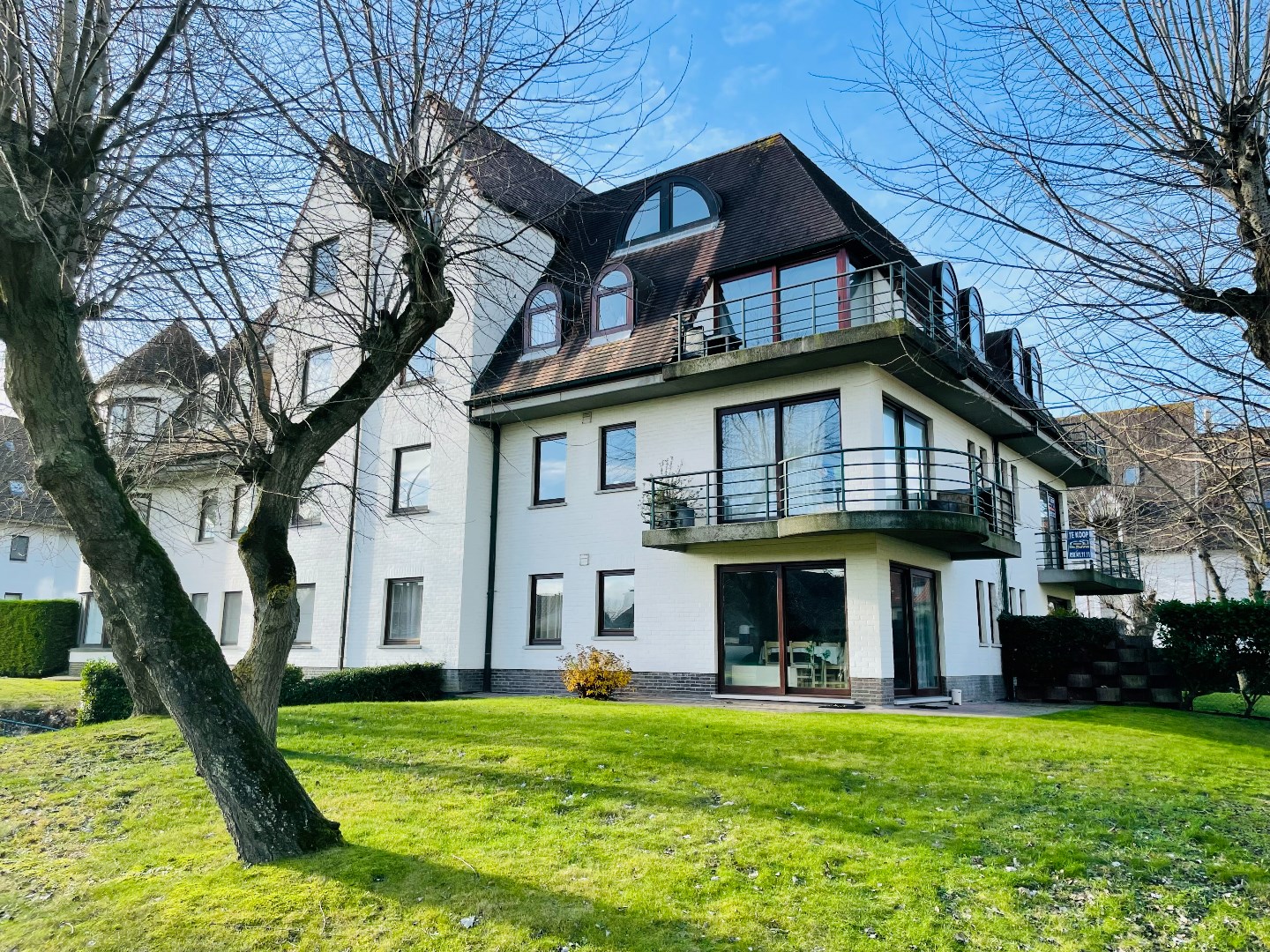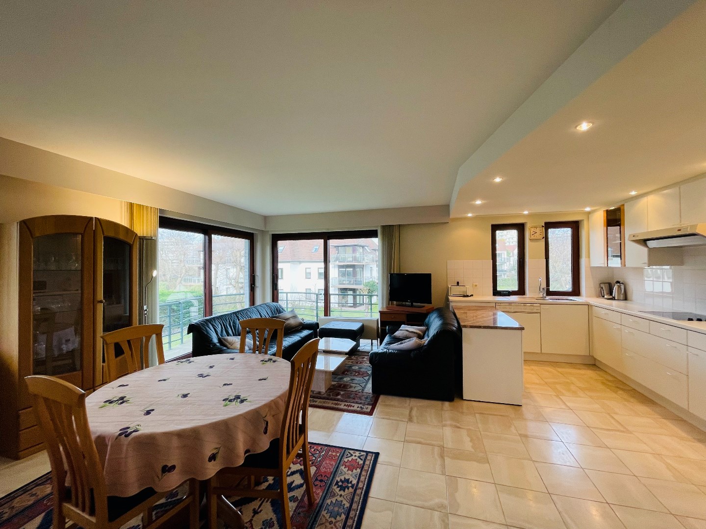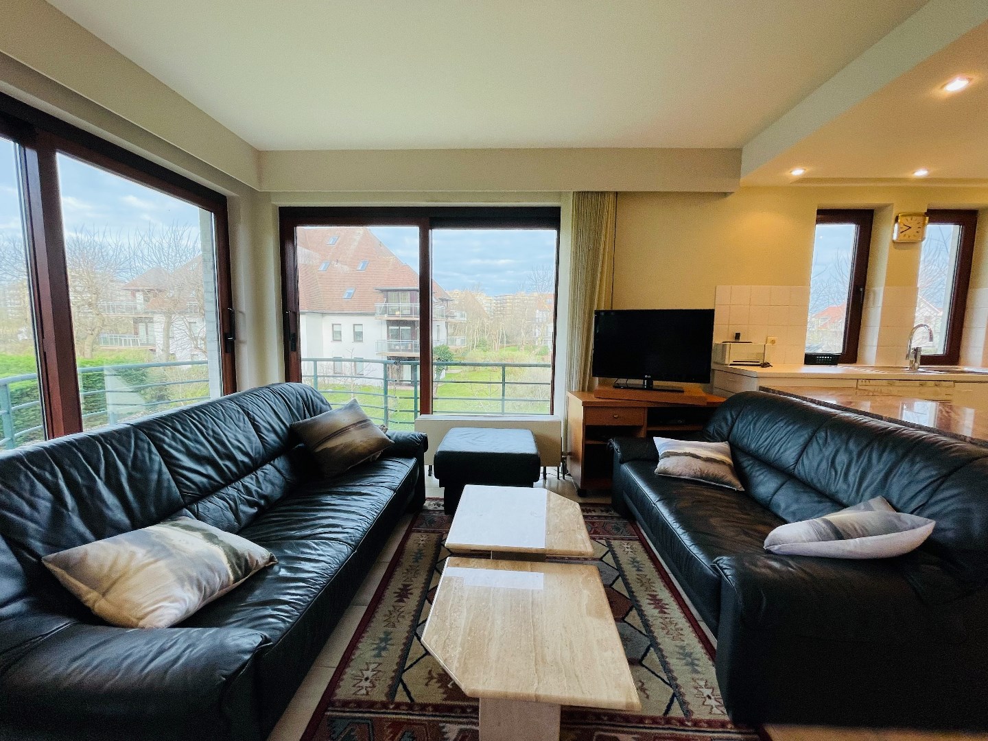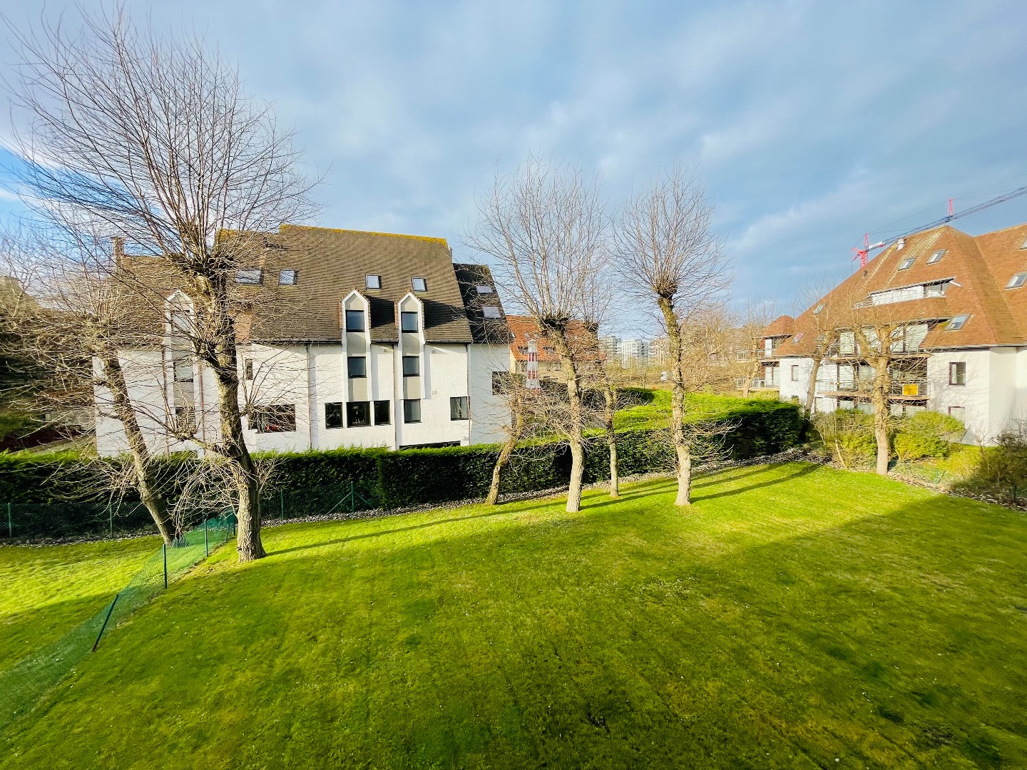 Bemeubeld appartement in een groene omgeving, vlakbij het openbaar vervoer en het strand.