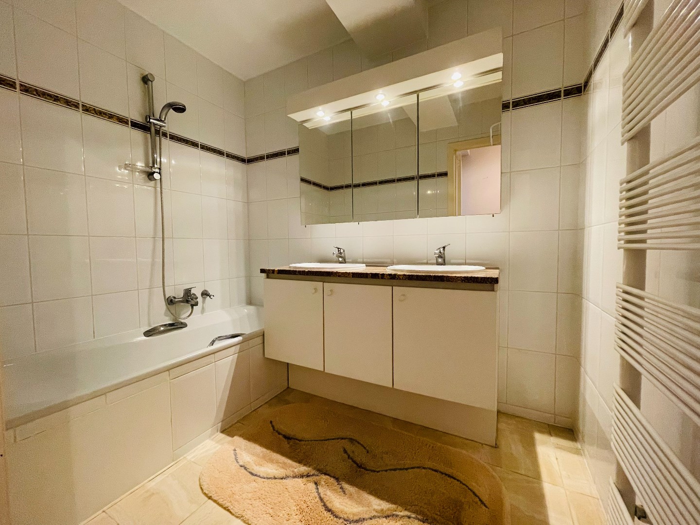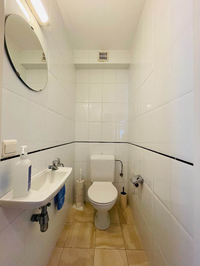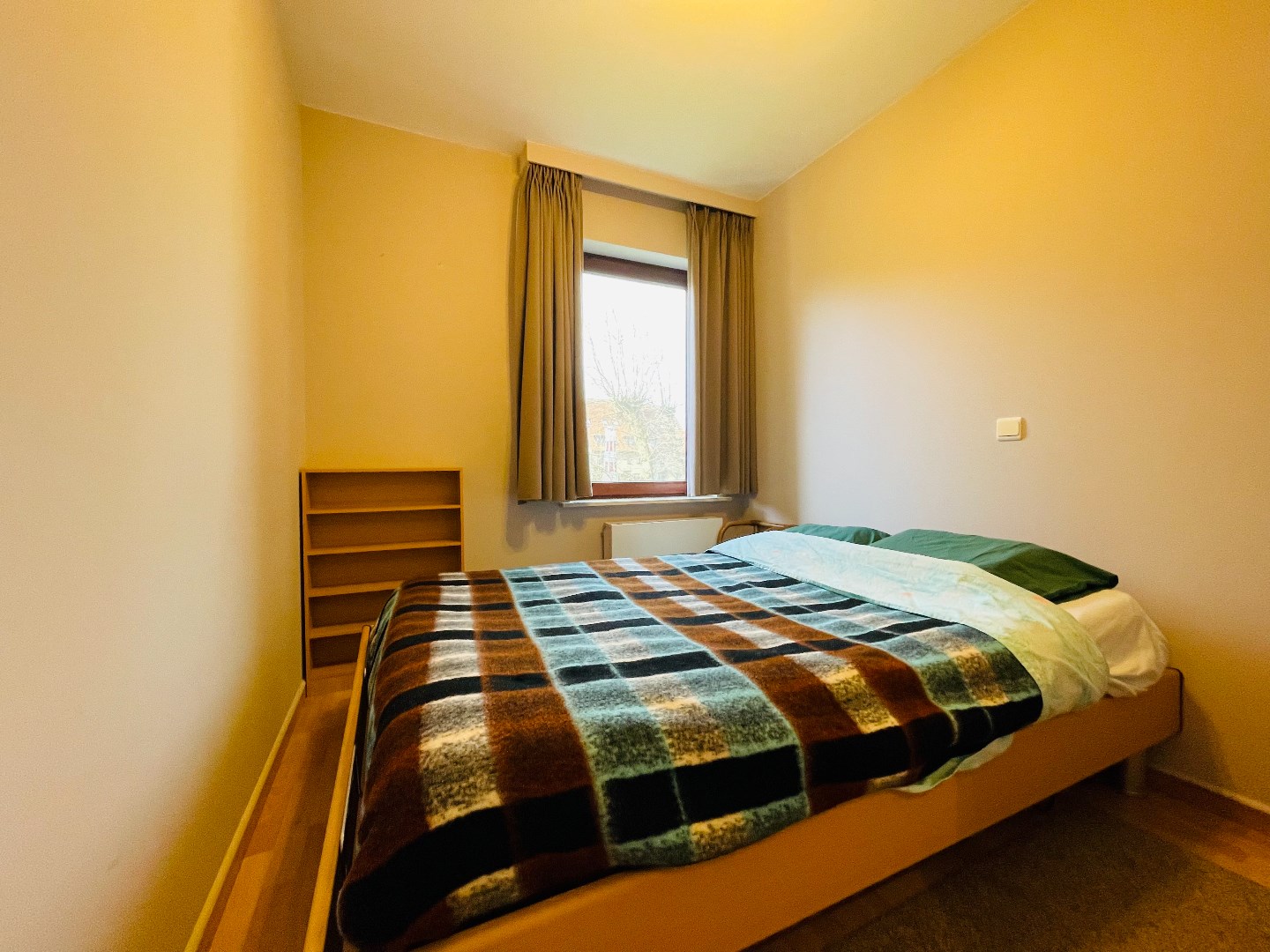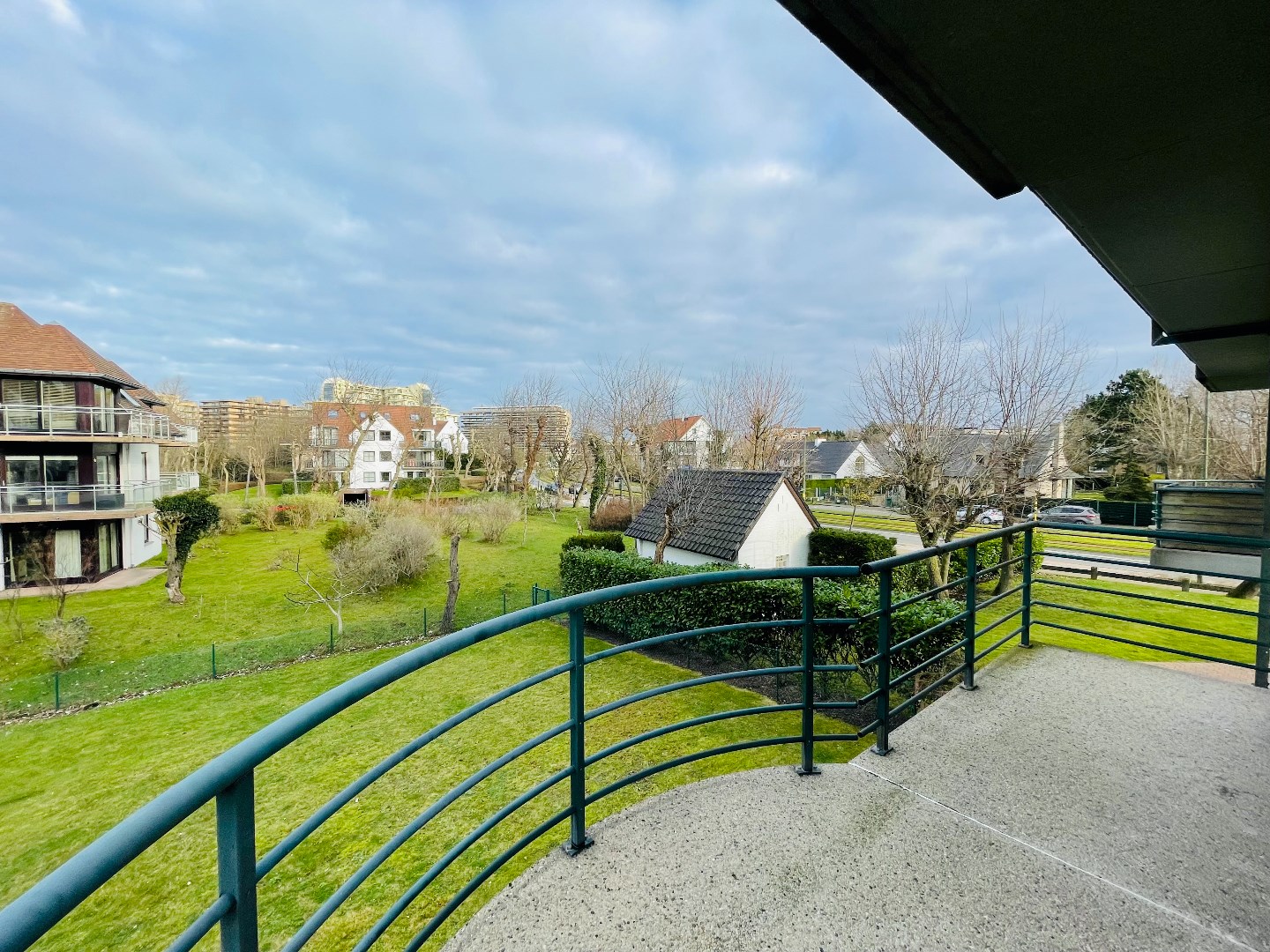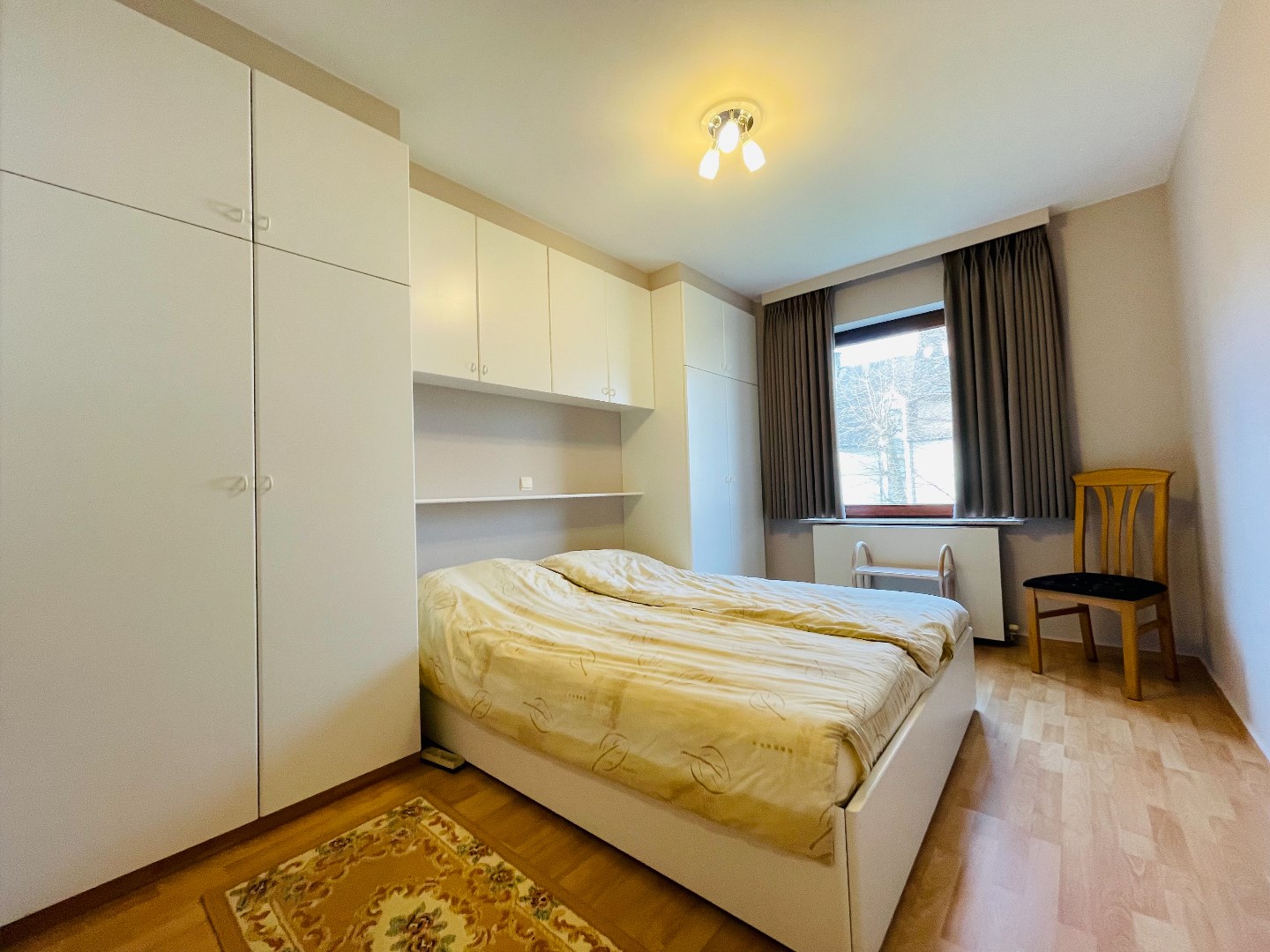 Bemeubeld appartement in een groene omgeving, vlakbij het openbaar vervoer en het strand.