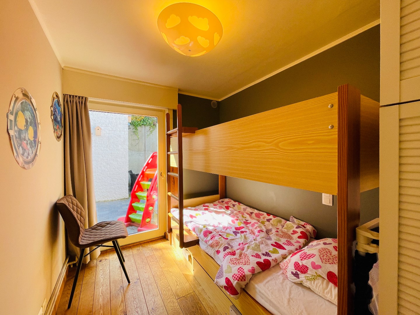 Inkomhal, ruime woonkamer, volledig ingerichte lichtrijke eetkeuken, nachthal, 2 slaapkamers, badkamer met bad en wastafel, douchekamer, apart toilet, groot zongericht terras met bergruimte en aansluiting voor een wasmachine en een privatieve parking voor de residentie.