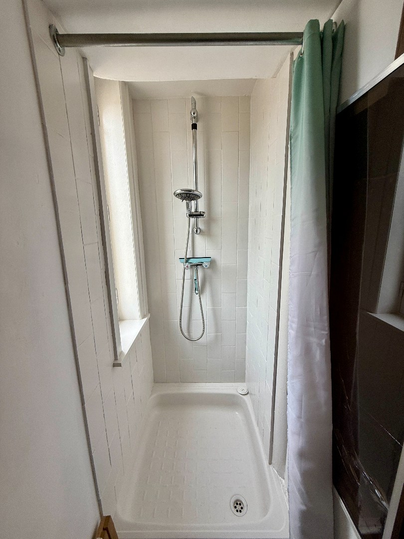 Woonkamer, ingerichte keuken, doucheruimte, apart toilet en 1 slaapkamer. Gemeenschappelijke kelderberging in het gebouw.
