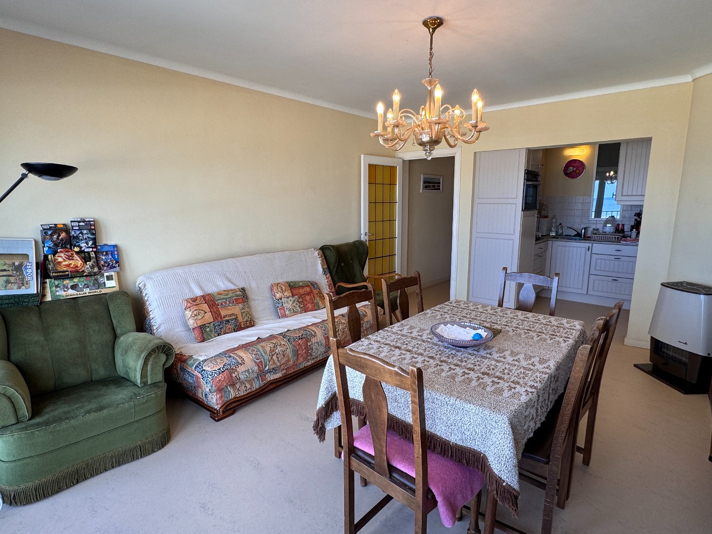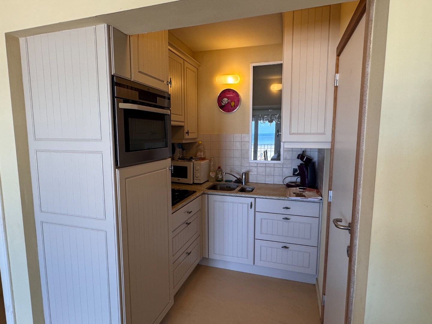Inkomhal, woonkamer met zeezicht, ingerichte keuken, 1 slaapkamer, badkamer met douche en wastafel, apart toilet en een privatieve kelder.