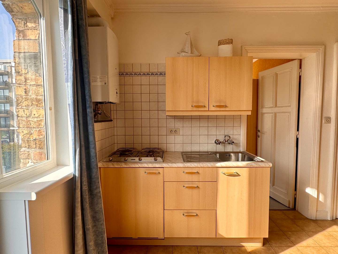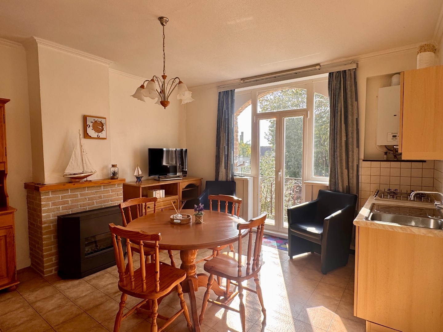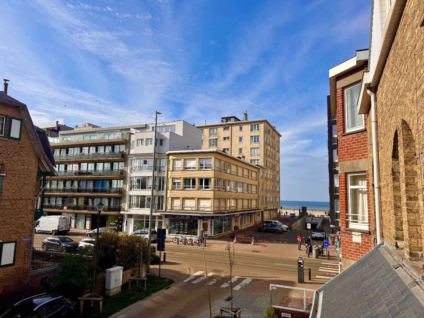 Bemeubeld appartement met zijdelings zeezicht op enkele stappen van het centrum .