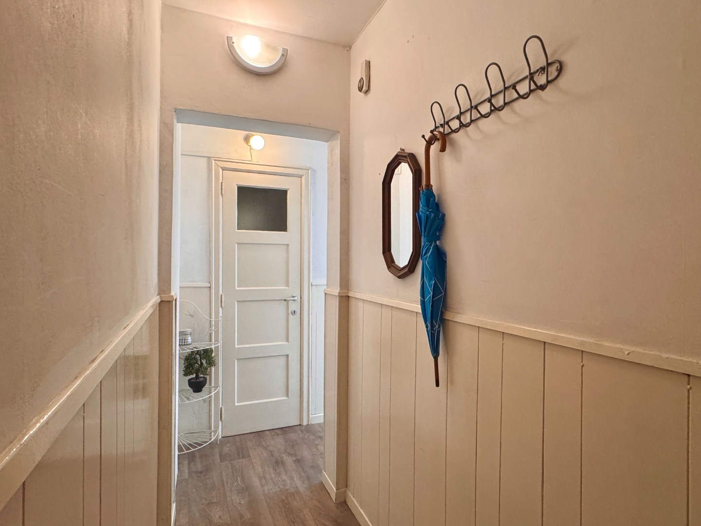 Inkomhal, woonkamer, keuken, slaapkamer, badkamer met douche en wastafel en een apart toilet. Privatieve berging in de kelder.