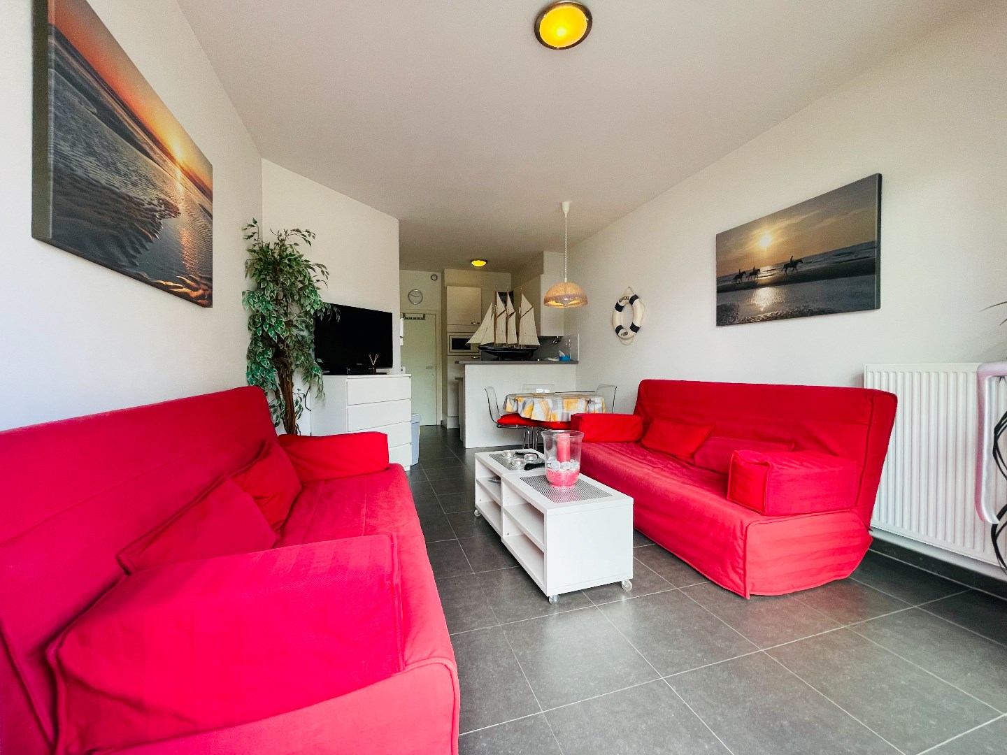 Bemeubelde studio op het gelijkvloers op 90m van het strand, vlakbij het openbaar vervoer.