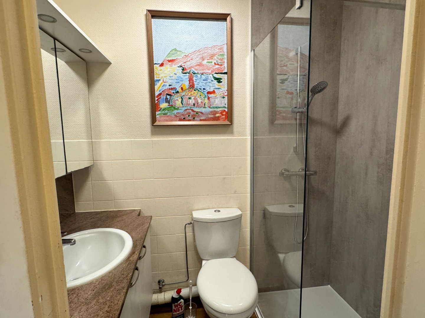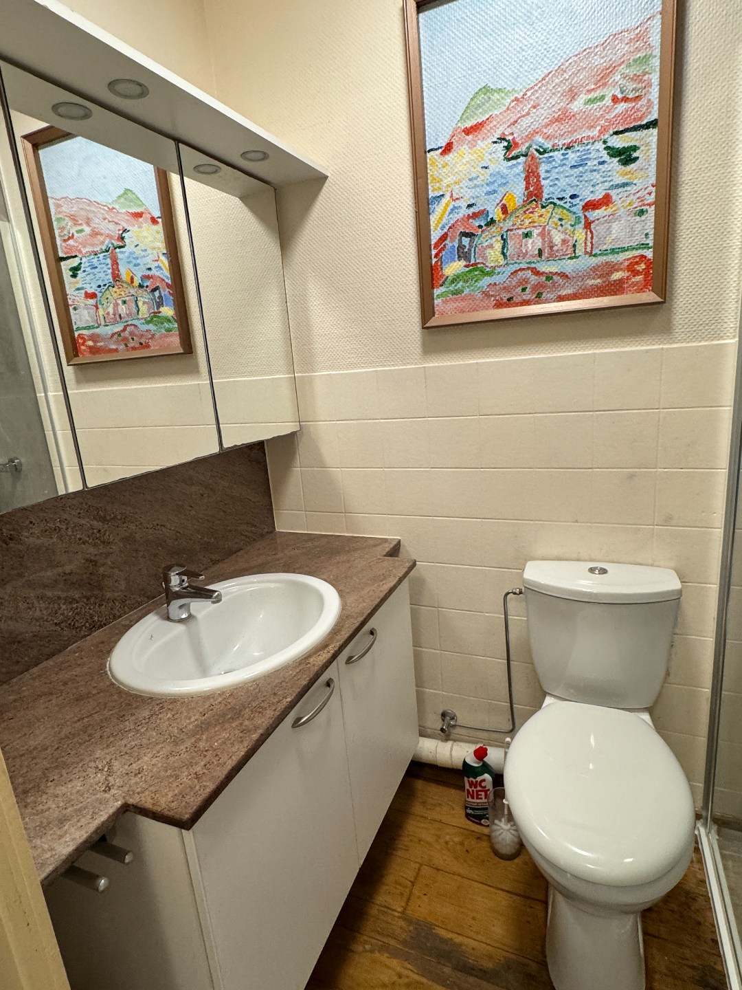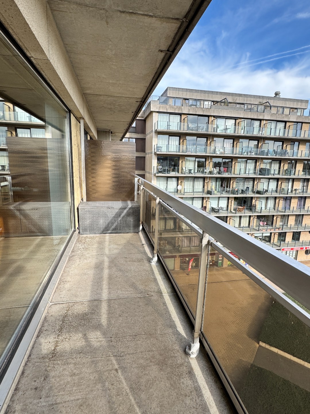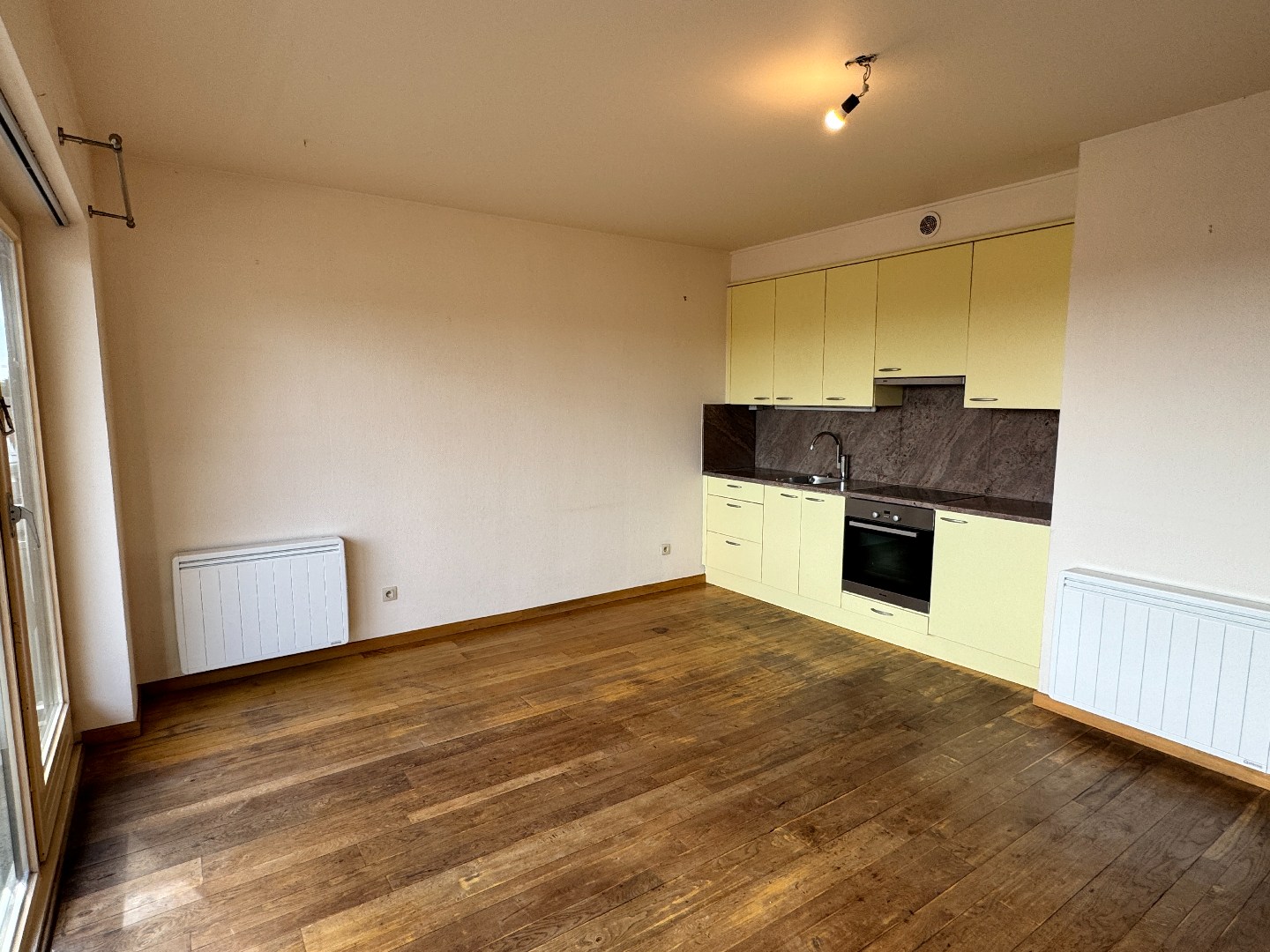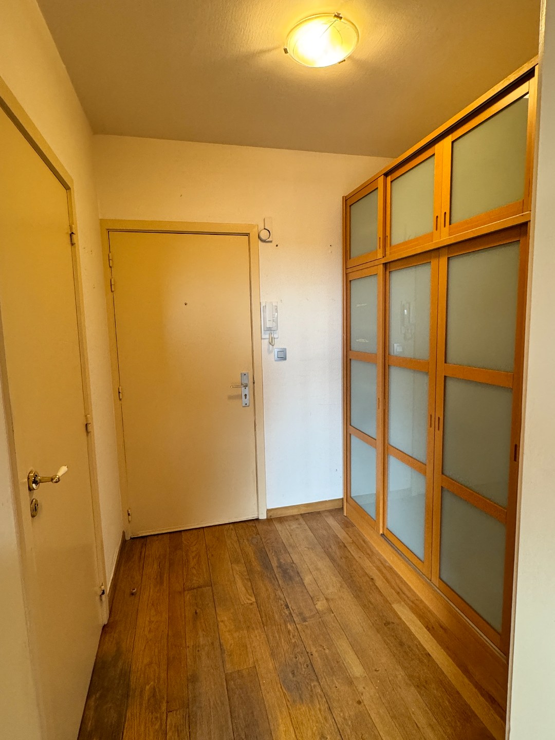 Inkomhal, woonkamer met open keuken, terras met zicht over de Dumontwijk, badkamer met vernieuwde douche, wastafel en toilet en een privatieve kelder.
