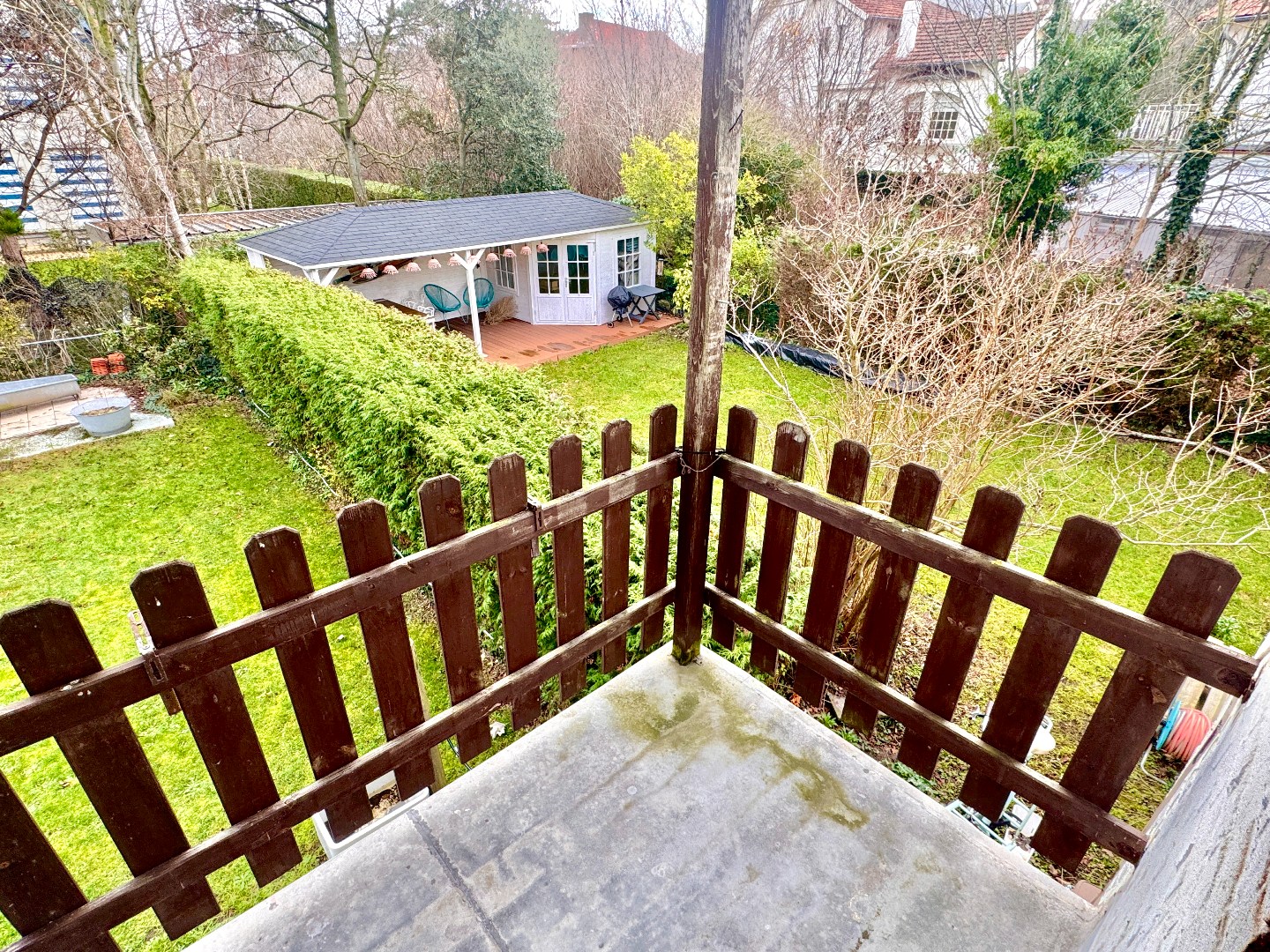 Eerste verdieping: nachthal, een badkamer met wastafel, bad en toilet, twee slaapkamers waarvan één met ensuite badkamer en balkon